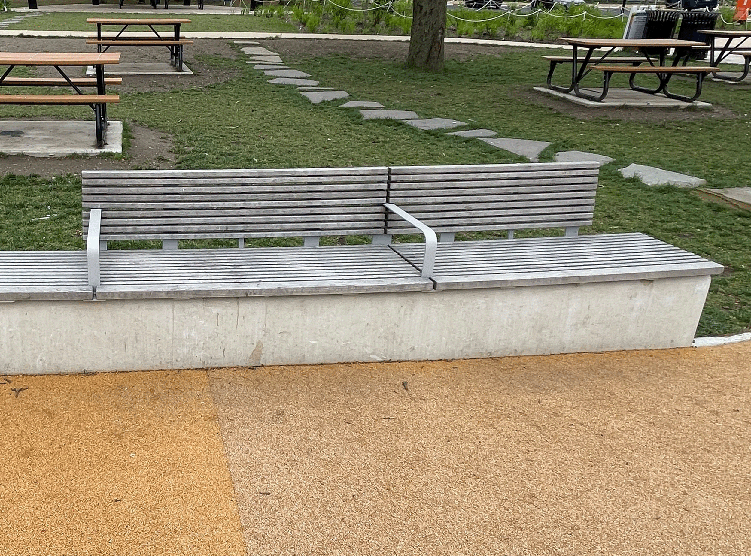 At the heart of the design are striking features like slides wrapped around full trees and climbing structures crafted from debarked tree trunks. Adding both beauty and functionality, the playground's benches—constructed from thermally modified Oak by Sitecraft—complement the organic aesthetic. These benches, with their elegantly curved narrow slats, are sourced from the forests of Pennsylvania and crafted from Americana® Thermally Modified Hardwood.