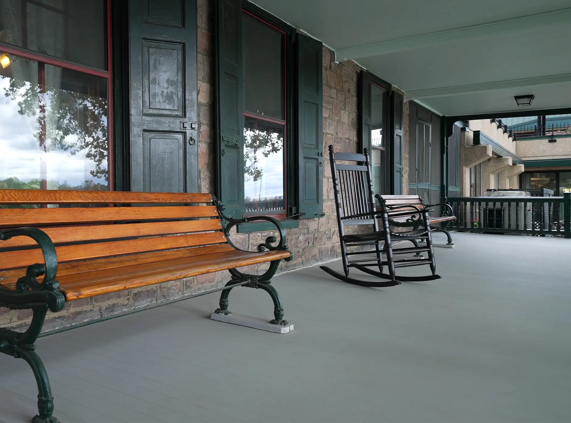 The installed Americana™ porch flooring provides a seamless, era-appropriate aesthetic. As seen in the project video, the flooring features a classic solid finish—a staple of Victorian porch design. The project team applied Benjamin Moore Woodluxe® Water-Based Solid Stain, which bonds exceptionally well to thermally modified wood due to its low moisture content. From the herringbone detailing to the sweeping run of the veranda, the flooring provides a sturdy, authentic foundation for the museum’s black rocking chairs and visiting guests. It preserves the soul of the Grundy home while ensuring it remains a landmark for generations to come.