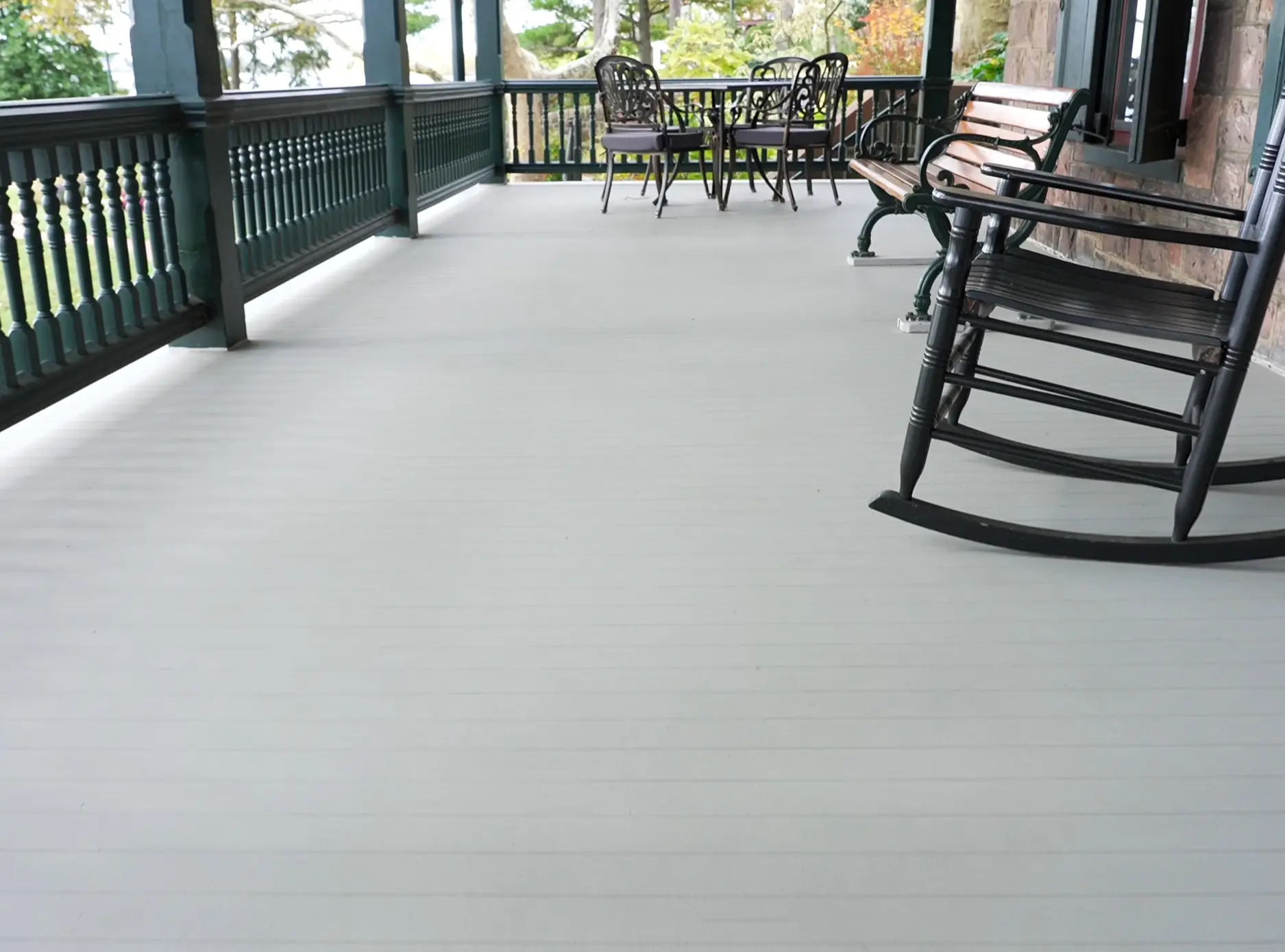 The installed Americana™ porch flooring provides a seamless, era-appropriate aesthetic. As seen in the project video, the flooring features a classic solid finish—a staple of Victorian porch design. The project team applied Benjamin Moore Woodluxe® Water-Based Solid Stain, which bonds exceptionally well to thermally modified wood due to its low moisture content. From the herringbone detailing to the sweeping run of the veranda, the flooring provides a sturdy, authentic foundation for the museum’s black rocking chairs and visiting guests. It preserves the soul of the Grundy home while ensuring it remains a landmark for generations to come.